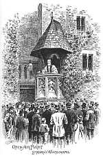 The picturesque and admirably placed open-air pulpit is a valuable means of reaching the many