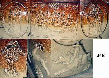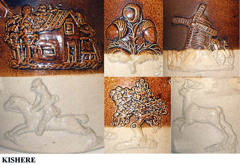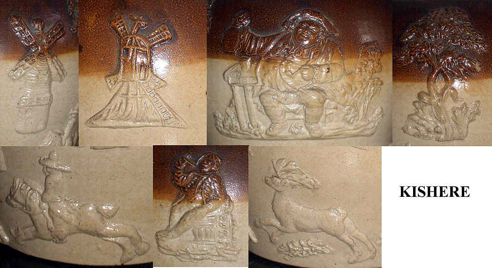 The sprigs shown here have been positively identified with Kishere (Mortlake). Any jug with an identical sprig is highly likely to be a Kishere jug.