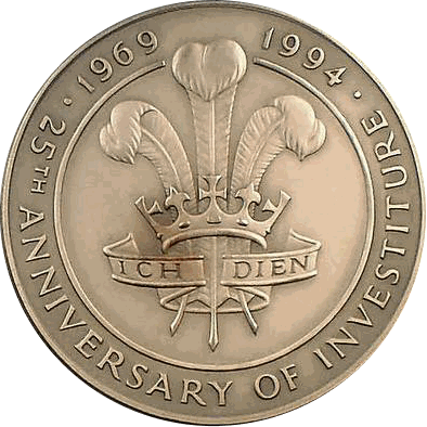 This medallion, issued in 1994 marks the 25th anniversary of the Investiture of Prince Charles.