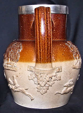 6 pint jug (private collection), sprigs copied from Stiff. Impressed mark G H CRICKMAY / WEYMOUTH POTTERY.