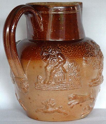 159mm, 2 pints. Another example has been seen with pairs of dogs and a huntsman without horn.