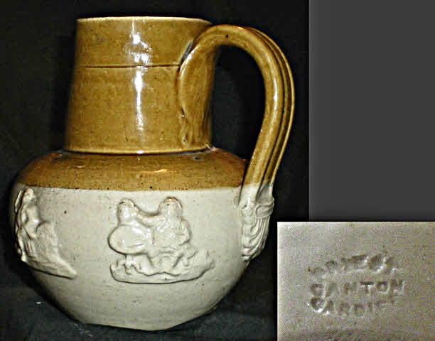 Wales has a long history of ceramic production ranging from the country potteries of Buckley in the north to the fine porcelain of Nantgarw. The Cambrian Pottery at Swansea was in operation from the 1760s to 1870, producing a wide range of earthenware and porcelain. Unfortunately Welsh production of stoneware seems limited to "Bristol Glaze". Flagons, bottles and a few jugs have been recorded with the mark "PRIEST CANTON CARDIFF".