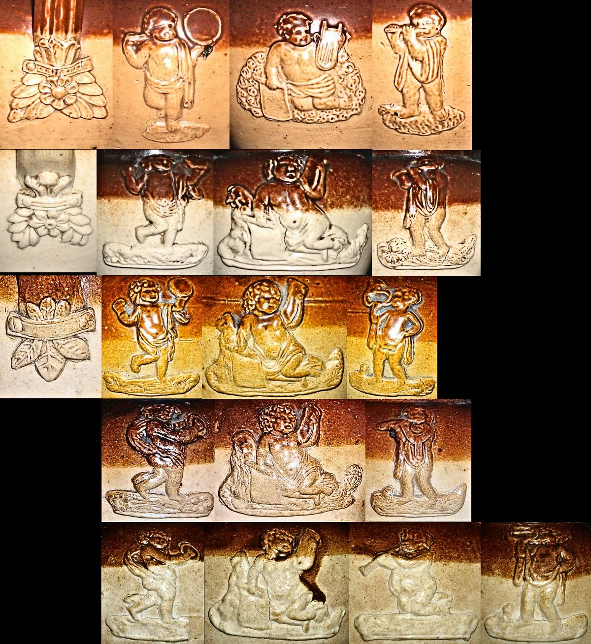 Mustard pots sprigged with three putti must have been very popular as many survive. I don’t know when they first appeared (possibly as early as the 1850s) but they continued in production until the end of the 19th century and maybe into the 20th.