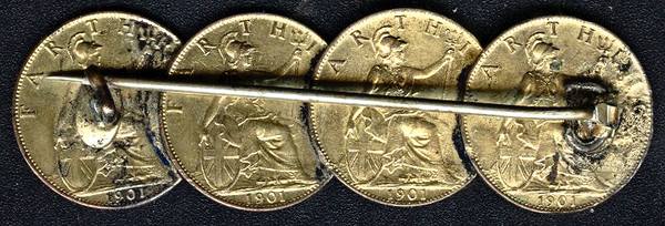 Four 1887 1/- gilded to imitate Half Sovereigns
