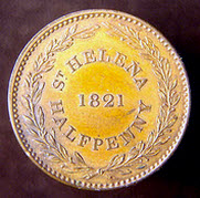 700,000 St. Helena copper halfpennies dated 1821 were intended for use