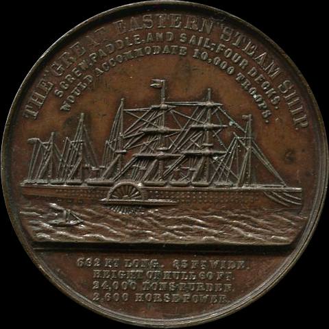 There are many medals commemorating its launch, early voyages and its last days in Liverpool. The earliest medals name it SS Leviathan but it was renamed SS Great Eastern before its maiden voyage.